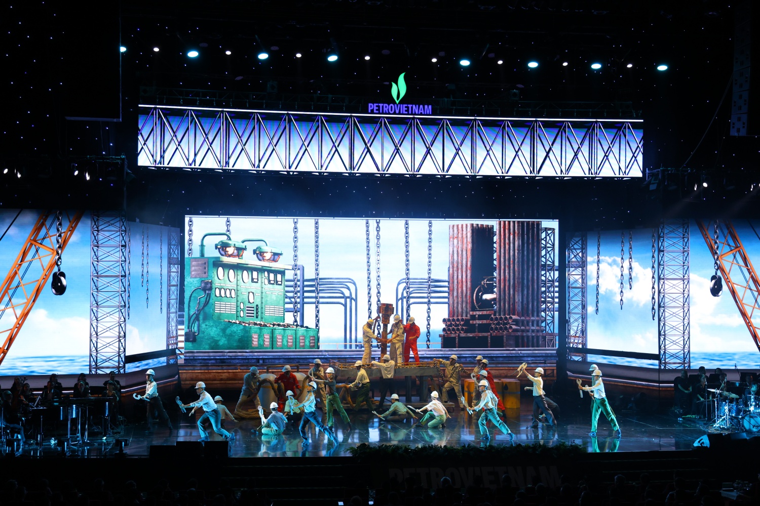 Đây không chỉ là một không gian nghệ thuật hoành tráng mà còn là hành trình đầy cảm xúc, đưa khán giả ngược dòng lịch sử để nhìn lại 50 năm hành trình và phát triển của Petrovietnam - từ những ngày đầu gian khó vươn lên trở thành tập đoàn kinh tế hàng đầu của đất nước, khơi dậy khát vọng về một Việt Nam hội nhập, phát triển thịnh vượng.